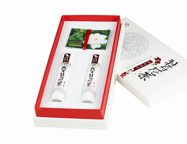 1.牡丹复合茶(与龙井、毛尖、大红袍、花果等混合) 便携装28元/盒--清香白198元/盒不等;