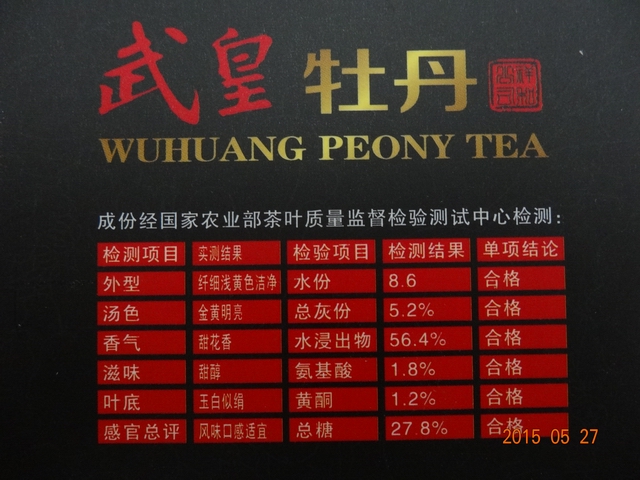“武皇”牌牡丹花茶分为:牡丹花瓣茶、牡丹工艺茶、牡丹复合茶三大类。等级有特A级、特级、一级、优级四个等级。
