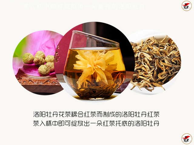工艺红茶茶入杯中十秒钟能绽放出一朵红茶托底的洛阳牡丹,汤色透澈、金黄;叶底明亮,香气馥郁,一口入喉,甘甜顿生、滋味鲜爽,韵味悠长,是中国红茶中的经典之作,是馈赠贵宾的尊贵好礼!